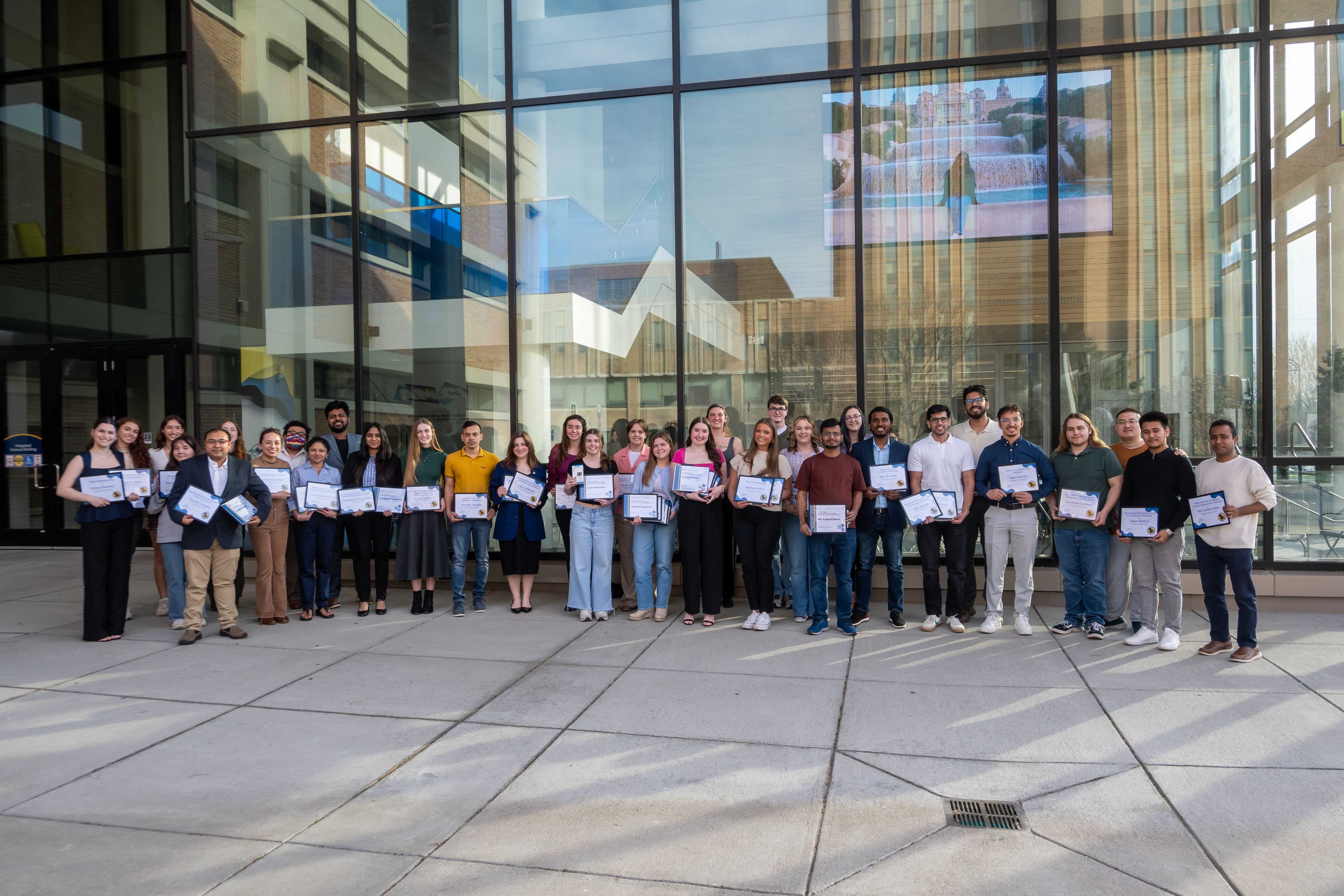 The Department recognizes its scholarship and award winners each year at our Department of Chemistry and Biochemistry Celebration of Student Achievement. We invite all scholarship and award recipients along with all undergraduate chemistry majors, chemistry graduate students and chemistry faculty to attend a special colloquium in their honor. The colloquium is followed by a brief awards program and reception.